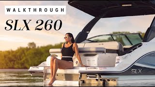 YOUR COMPANION FOR ENDLESS FUNExperience an escape from the day-to-day in a model that steals the spotlight with sophisticated style, luxury details and easy-to-use amenities. The SLX 260 combines ingenuity with intuition to reveal a host of next-level features that make boating effortless. Superior materials, plush upholstery and refined accents create a relaxing atmosphere encouraging those aboard to be present in the moment. Every inch of the SLX 260 has been carefully designed, from the updated seating layout to integrated storage optimized for space.